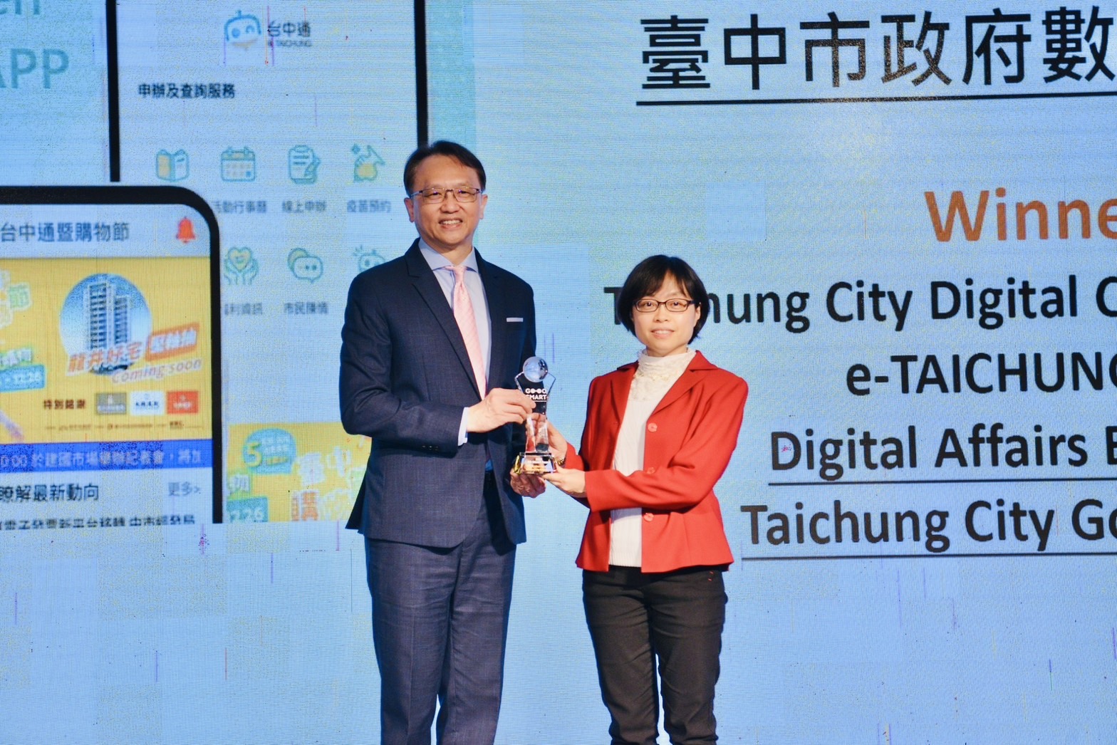 數位局長林谷隆指出,數位力就是城市的未來競爭力,台中在國際資通訊大獎中連續獲獎,說明台中長期推動的智慧城市發展已有成果,這不僅讓世界看見台中,更重要建構數位平台來服務市民、便利市民、榮耀市民,把世界級的優質服務提供給台中,讓台中人享受便利的智慧生活。