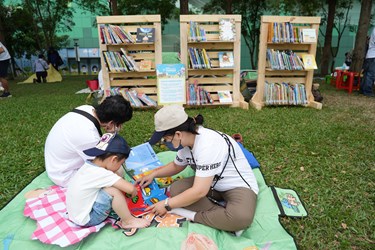 數位發展局長林谷隆也說,呼應今年市民野餐日「草地閱讀」主題,市立圖書館東區分館精選六百本童書,打造「草地共享大書櫃」,讓大小朋友自由取閱、沉浸閱讀,在微風與陽光陪伴下享受書香時光。許多家長席地共讀,與孩子一起翻閱繪本、探索故事,營造充滿美好回憶的親子閱讀氛圍。現場也設置「打卡書牆」,讓民眾留影、記錄專屬於台中的悠閒午後。