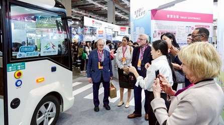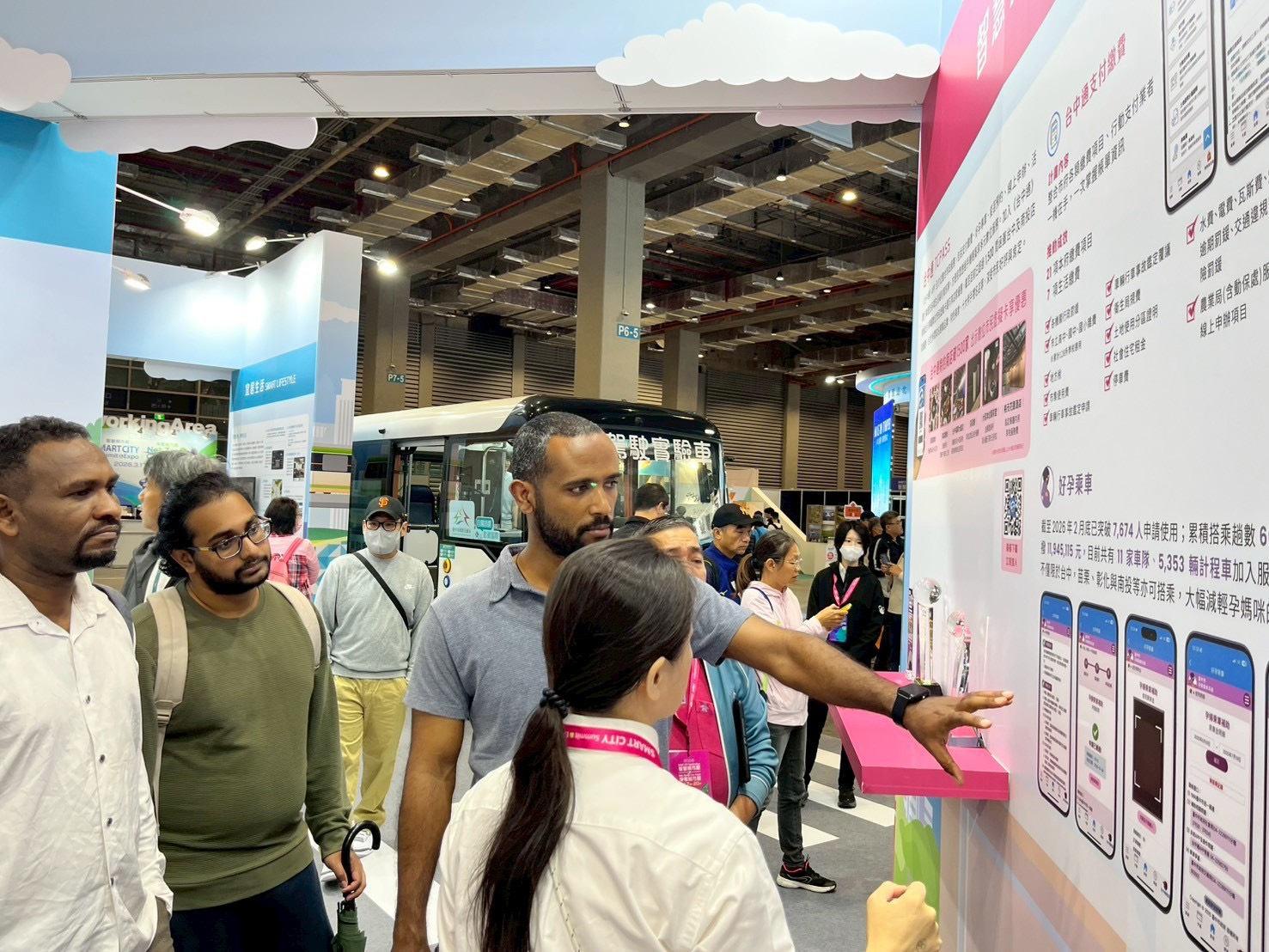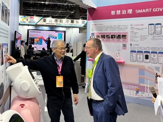 數位局長林谷隆指出,台中展區透過三大領域向全球輸出數位轉型經驗。在「智慧治理」部分,市府積極推動AI Taichung三部曲,建構完善AI生態系,並展現台中作為全球精密機械聚落的硬實力;「宜居生活」則現場呈現實體自駕巴士,勾勒未來交通藍圖,並展示智慧醫療機器人如何減輕護理負擔,實踐永續醫療;在「永續環境」方面,則透過節能與碳管理整合路燈及毒化物偵測預警系統,強化低碳治理效能並構築城市安全網。
