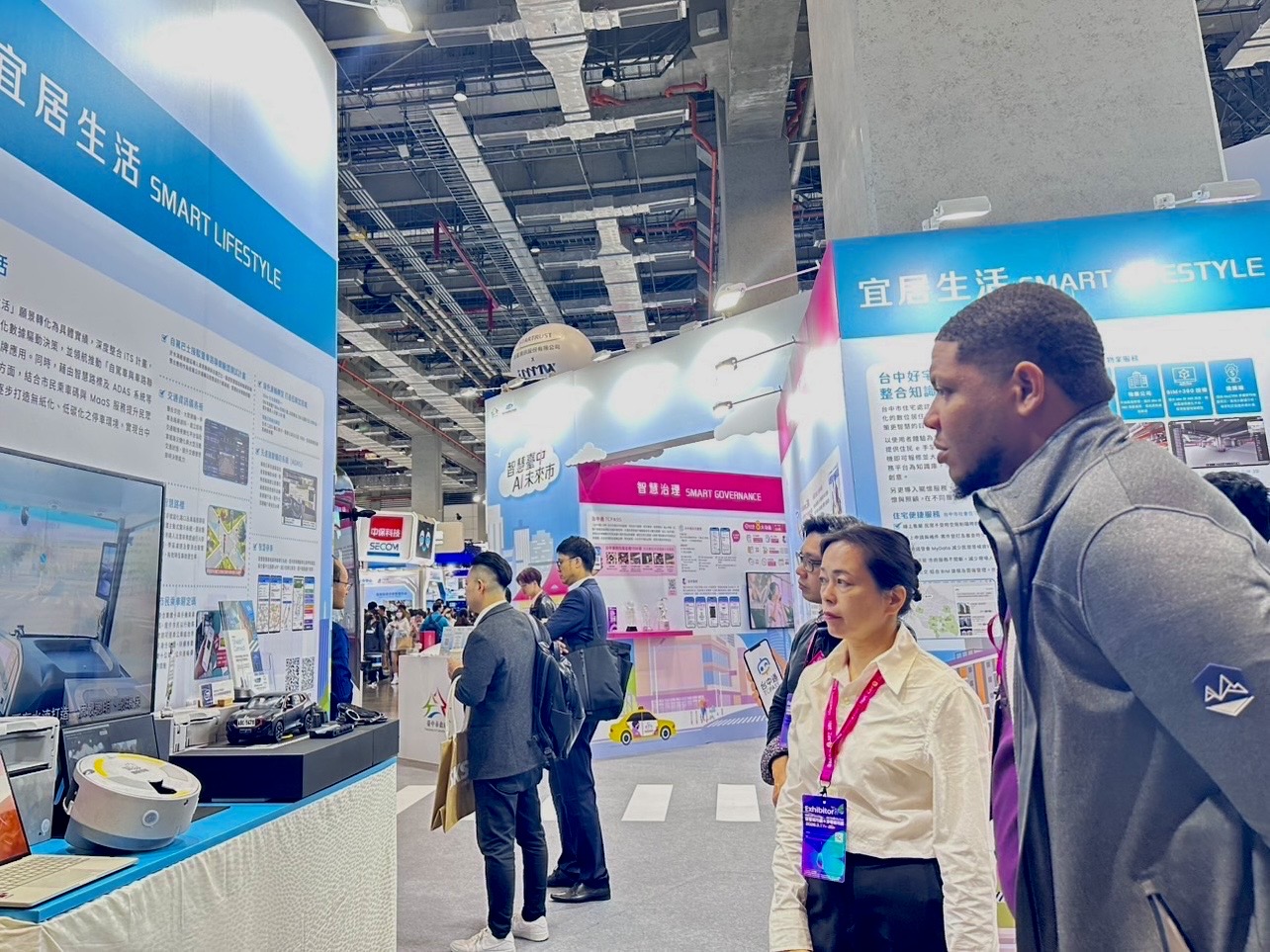 展覽期間,台中展區也成為國內外交流的焦點,包含立法院副院長江啟臣、嘉義市長黃敏惠、花蓮縣長徐榛蔚,以及德國卡斯魯爾副市長考夫藍博士、泰國馬坎庫市長阿蒙特·雷龍、巴吞他尼府南三高市長提拉塔·宋賢、菲律賓碧瑤市議員與美國ICF會長John Jung等國內外重要貴賓皆親臨觀摩、給予高度肯定。值得一提的是,台中展區的國際影響力持續擴大,外賓訪團國別從去年的美日德法西等7國,於今年成長至美日德奧泰菲印度及巴西等8國,顯見台中智慧城市實績已深獲國際關注。